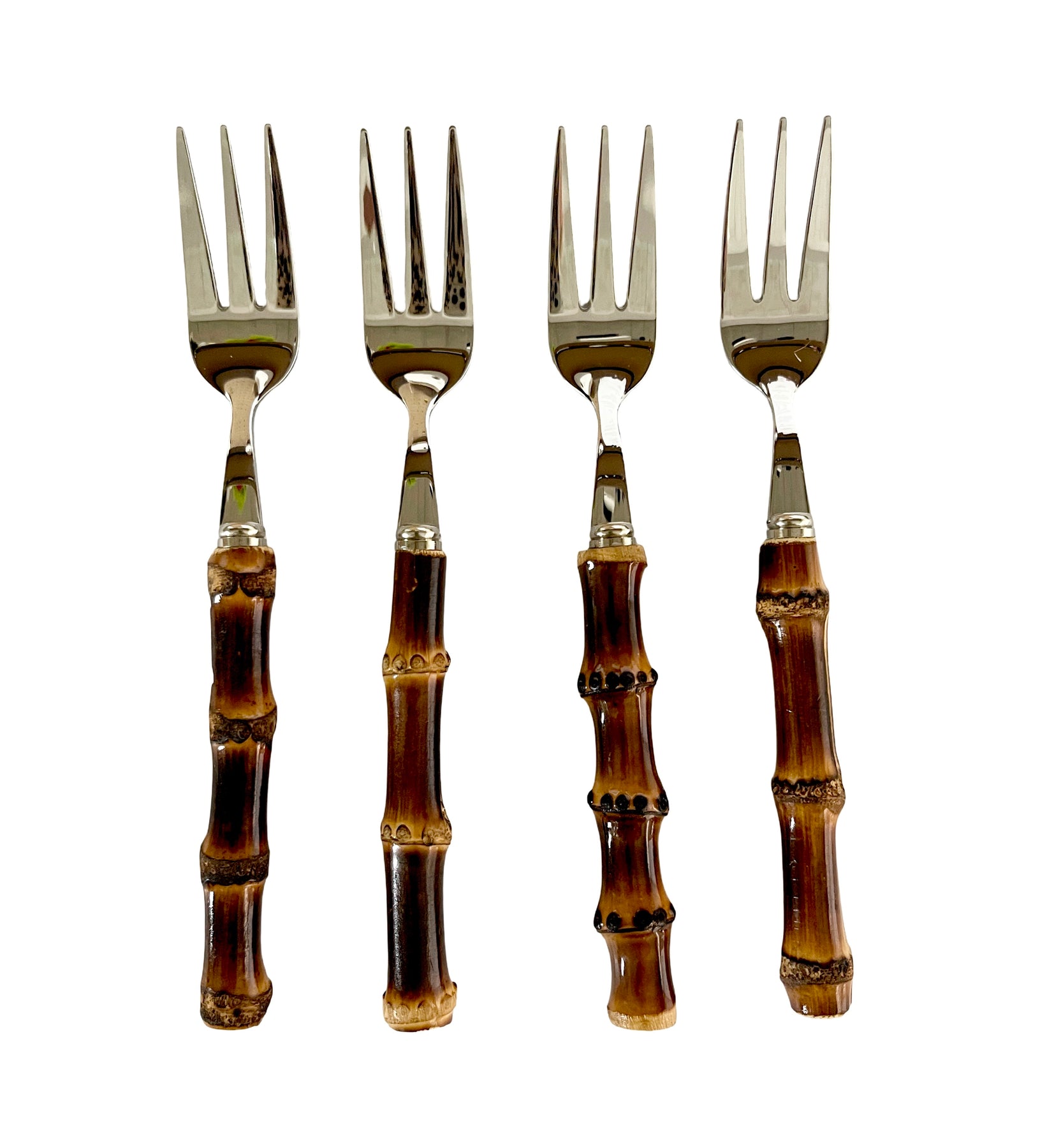 Add some tropical lux to your dining table with these gorgeous burnt bamboo handle cake forks with a silver finish.