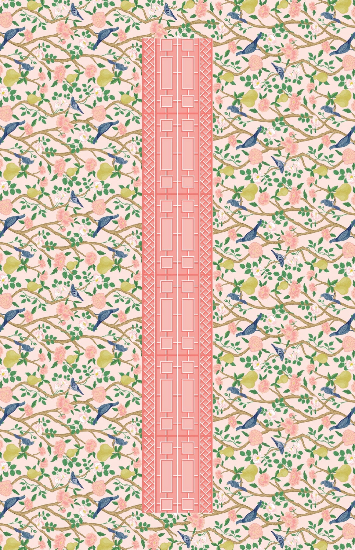Featuring a beautiful botanic print with a lattice 'runner' built in to the pattern.